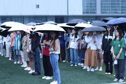 1 外院学子等待升旗仪式开始