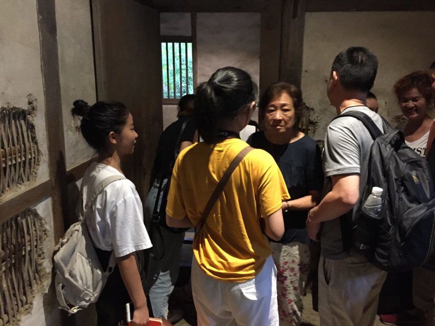 队员为游客介绍茅屋的历史