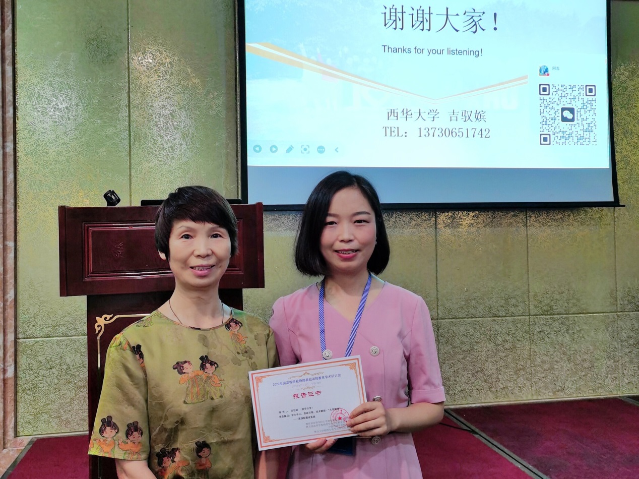 会议以大会报告,分论坛报告,张贴论文的形式进行,理学院教师吉驭嫔受邀在分论坛作题为《学生中心,思政引领,技术赋能—“大学物理”一流课程建设实践》的专题报告。吉驭嫔介绍了国家级一流专业建设点我校应用物理学专业及特色做法,重点分享了省级一流课程《大学物理B》的建设经验。大学物理课程以“一体两翼四维”教学模块为基础,引入线上线下混合教学模式,构建三空间联动、三维度互动的多维度智慧教学系统,扩展教学空间,科学管理教学过程。
