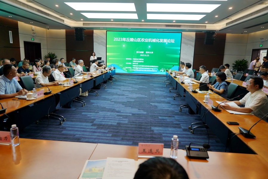 8月23日上午,2023年丘陵山区农业机械化发展论坛在西华大学郫都校区办公楼101会议室举行。中国工程院院士、华南农业大学罗锡文教授,中国工程院院士、石河子大学陈学庚教授,中国农业机械学会监事长、中国农业机械化科学研究院副院长、中国农业机械化科学研究院首席专家方宪法教授,农业农村部南京农业机械化研究所原党委书记胡志超研究员,中国农业机械学会农机化分会主任委员、中国农业大学中国农业机械化发展研究中心主任、中国农业大学杨敏丽教授,中国农业机械学会丘陵山区农林机械分会主任委员、重庆市农业科学院农业机械研究所庞有伦研究员,西华大学原党委书记、四川省乡村振兴促进会会长边慧敏教授,四川省农业农村厅相关处室负责人,西华大学党委副书记、校长李秋实,校党委副书记张力,副校长郎方年,受邀出席。参加中国农业工程学会2023年学术年会的部分代表,以及其他科研院所、高等院校、生产企业的领导与专家参加了本次论坛。杨敏丽教授主持论坛。