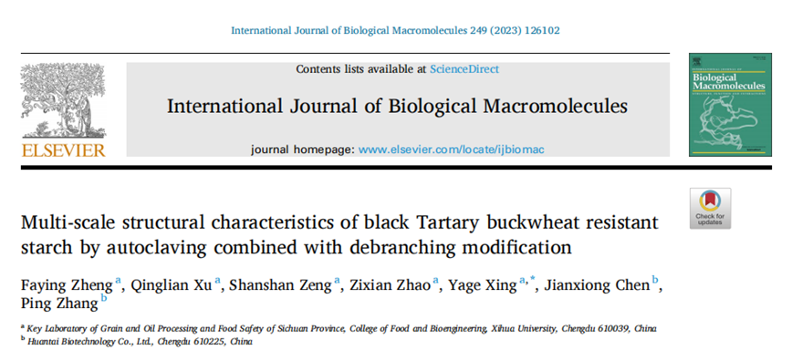 近日,西华大学食品与生物工程学院 “农产品贮藏与加工”团队在International Journal of Biological Macromolecules(一区,IF: 8.2)上发表题为“Multi-scale structural characteristics ofblack Tartary buckwheat resistant starch by autoclaving combined with debranching modification”的研究论文。西华大学2021级硕士研究生郑发英为论文第一作者,邢亚阁教授为论文通讯作者。该研究工作得到了成都市科技项目(2022-YF05-00914-SN)和四川省科技计划项目(2018NZ0097)的资助。