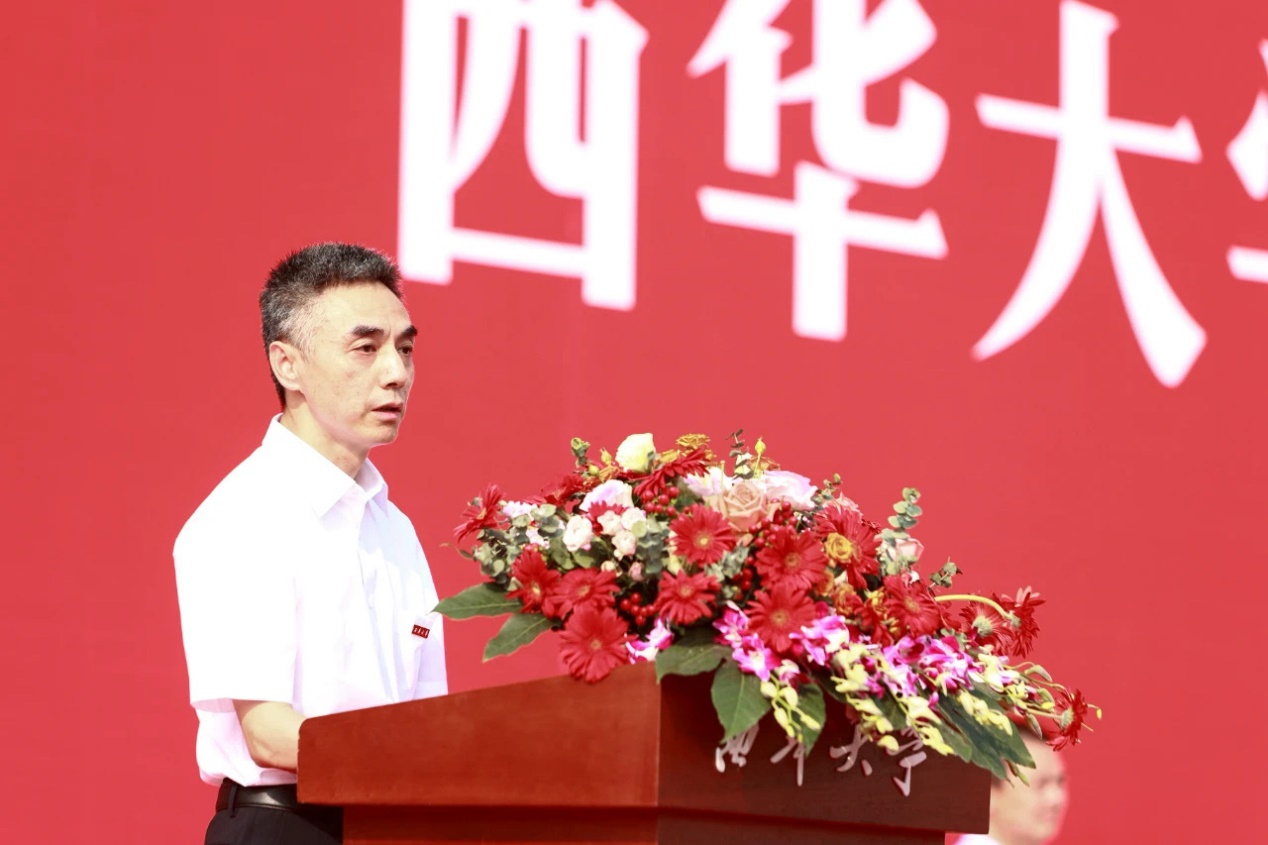 同学们,大学生活的开启对于大家而言,将是一种与过往完全不同的人生瞬变。没有了父母的呵护,也没有了师长的监督,你们会在短时间内感到莫名的“兴奋”,然后可能是“无所适从”。我希望大家在任何情况下,都要追求进步,而不是“打发时间”,因为逝去的时光不会给我们后悔的机会。那些说“大学可以混”的学长或者同乡,是否已经或正在为那一时的“混”付出惨痛的人生代价?抓紧在大学的一切时间学习,让自己变得更加强大,带动周围的同学、同事一起进步,这才是新西华人该有的模样。 你们当中,有家住阿坝州松潘县,参与花椒采摘、晾晒等特色农产品全过程生产的数学专业本科新生黄福鑫同学;有获得省级青少年机器人竞赛奖项的土木工程专业本科新生高熙文同学;有热心公益、大学期间志愿服务超过300小时的能源动力专业研究生新生周铭豪同学;有在部队获得嘉奖、“四有”优秀士兵,退伍考研的应用经济学研究生新生李学伟、马克思主义理论研究生新生田晨翀等同学;有在伊拉克地表温度高达60°C的炎热夏季,带领团队起早贪黑,奋战25天完成钻井设备安装调试,被甲方和国外雇员誉为“了不起的中国平台经理”的应急管理学院研究生新生苏立飞同学。你们,是西华学子追求进步的榜样。平安健康,是所有老师和家长对同学们最大的希望。清华大学在上世纪五十年代就号召“为祖国健康工作五十年”,诞生于93年前的今天、深受全国人民喜爱的杂交水稻之父袁隆平先生还曾获得湖北省男子百米自由泳第二名。希望你们好好吃饭,珍惜每一粒粮食,在校期间锻炼出过硬的身体素质。更希望你们豁达乐观,锻炼强大的心理承受能力,注意交通和生命安全,小心电信诈骗,牢记天上不会掉馅饼,在纷繁复杂的网络信息面前,学会辨别与选择,分清善恶,遵纪守法,即使确诊胡歌,早F晚E,也请信任你们的辅导员和心理咨询师。