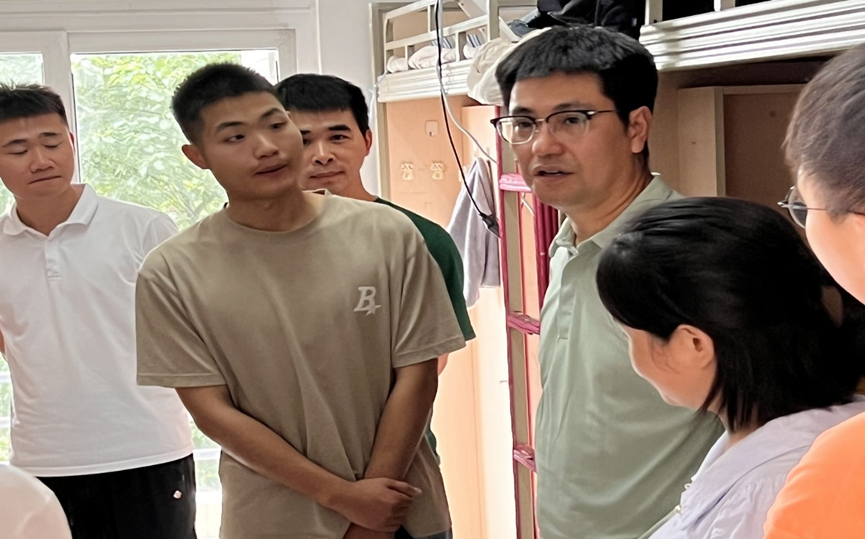 9月6日下午,理学院党委书记裴峥、党委副书记兼纪委书记周川、副院长王玉兰、副院长李会东、团委书记谭佳德及部分辅导员代表前往宿舍看望2023级新生。