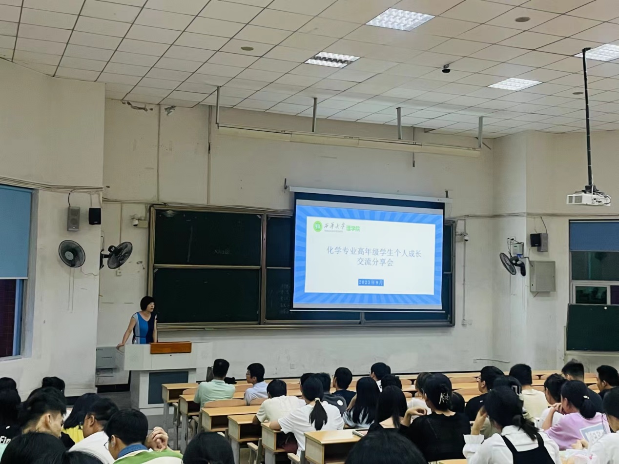 近日,理学院在4A-404召开化学专业高年级学生个人成长交流分享会,本次会议由院党委副书记兼纪委书记周川主持,院长王周玉、化学专业教授陈明军、2020级化学专业本科生辅导员、2021级本科生辅导员以及2020级和2021级全体化学专业本科生参加。