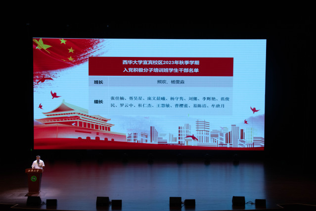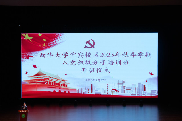 为深入学习习近平新时代中国特色社会主义思想,学习宣传贯彻党的二十大精神,切实加强入党积极分子思想政治理论教育,9月27日中午,宜宾校区2023年秋季学期入党积极分子培训班开班仪式于在会堂如期举行。宜宾校区党工委常务副书记陆跃文、党工委副书记毕达平、教学工作办公室主任熊朝坤、学生工作办公室主任杨万能、培训班联络员老师以及289名入党积极分子参加本次开班仪式。