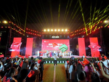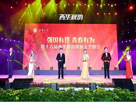 四川经济在线成都10月16日讯 10月14日晚,在声声倒计时中,“强国有我,青春有为”——第十六届西华秋韵迎新文艺晚会在西华大学临江运动场拉开序幕。本届西华秋韵分设成都和宜宾两个会场,两个会场同时演出,实时共享。精心打磨的节目在灯光下熠熠生辉,演员们热情洋溢的笑容感染着线上线下每一位观众。