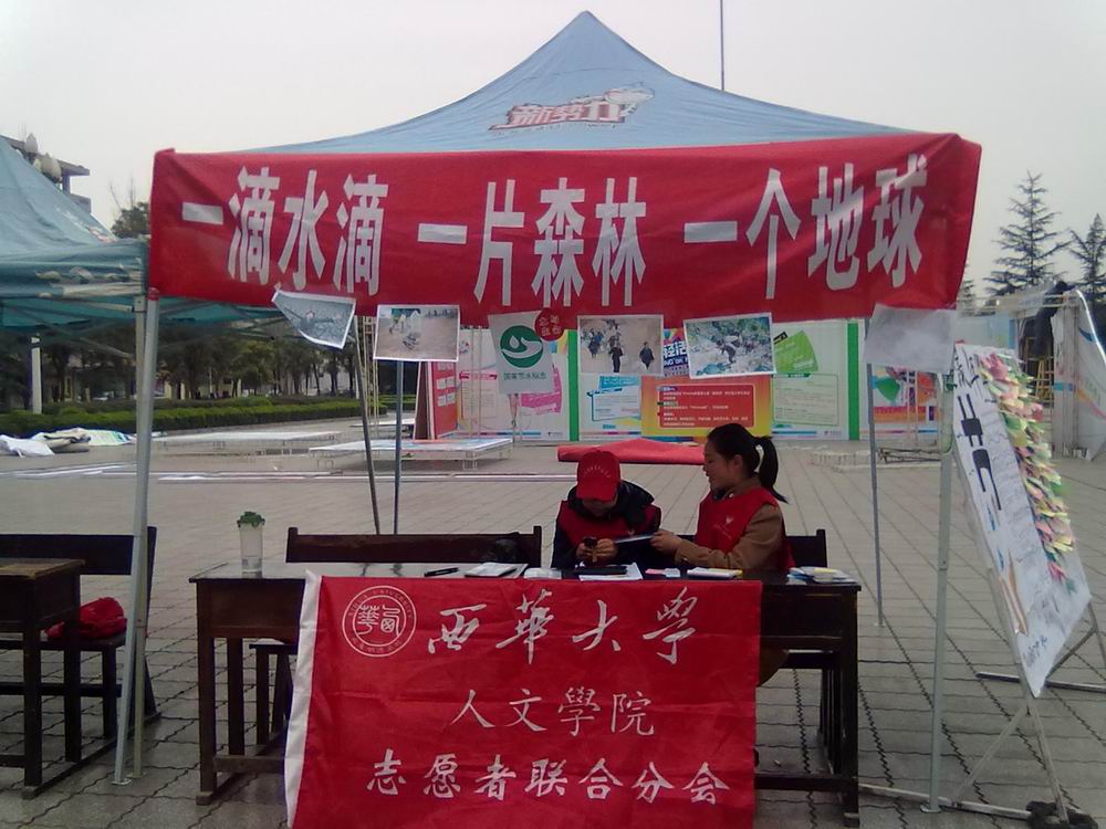 3月22日是第十八届“世界水日”,3月22—28日是第二十三届“中国水周”。今年“世界水日”的主题是“关注水质、抓住机遇、应对挑战”。为了让全校同学了解有关世界水日和节约利用水资源等方面的知识,传播环保节约理念,西华大学环境保护协会和人文学院志愿者联合分会联合开展了“关注世界水日,争做环保卫士”主题系列活动。