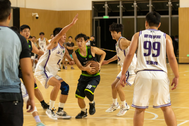 乘势而上开新局,砥砺前行谱新篇。第一场是由材料科学与工程学院和管理学院带来的精彩比赛,比赛共分为四节。运动员们交错变换的步伐和敏捷矫健的身影展现在篮球场的各个地方。他们冲破层层攻守,抛出一条条优美的弧线。当篮球落入球筐时,随之而来的是观众们热情的呐喊声和激烈的鼓声。比赛进行得如火如荼,你追我赶,难分伯仲。在最后一秒,材料学院凭借一颗完美的“三分球”领先管理学院一分,最终以4342的成绩取得了本场比赛的胜利。