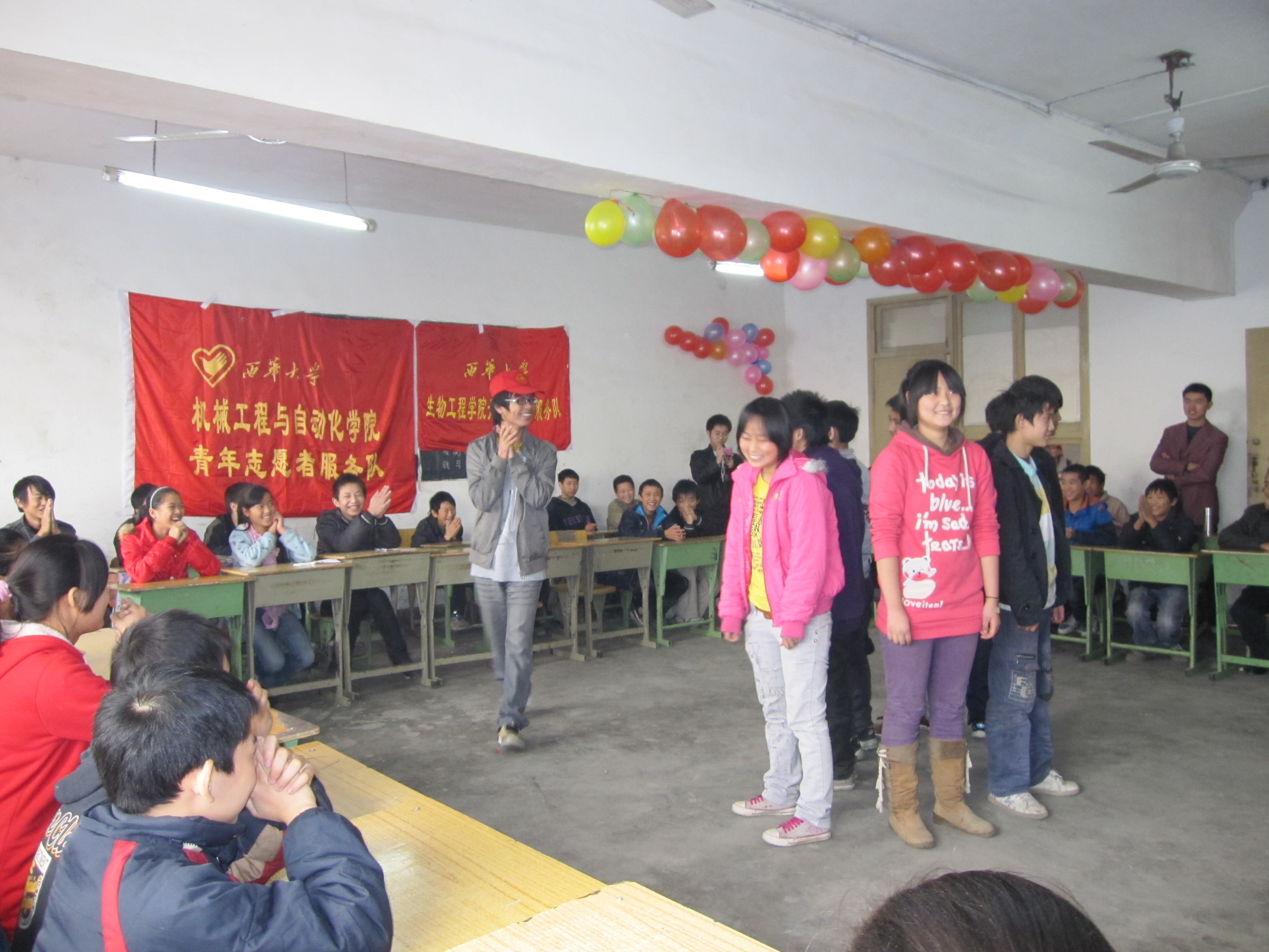 | 12月2日中午12:40至13:40,生物工程学院青年志愿者服务队和机械工程与自动化学院青年志愿者服务队积极响应校团委“创优争先”活动的号召,在金剑文武学校初二一班举行了一场名为“提升素质,优化自我”的支教活动。生物工程学院和机械工程与自动化学院数名青年志愿者参加了此次支教活动。 本次活动由生物工程学院和机械工程与自动化学院共同策划组织。12:40活动准时开始,志愿者们精心准备了一系列节目。问答环节,同学们踊跃发言,积极抢答;贴近校园生活的小品,让活动现场气氛也逐渐提升,欢笑声与掌声不时的响彻教室;“数字惩罚”游戏把活动推向活动的高潮。志愿者们与孩子们的良好互动,让孩子们轻松地学到了很多知识。活动结束后,志愿者们与孩子们合影留念,希望把这美好的记忆留在心中。 通过这次支教金剑文武学校活动,孩子们学会了积极乐观的生活态度,在以后的学习生活中将更加注重自我的素质提升。同时,参与活动的全体志愿者们不仅积极响应了“创优争先”的号召,增加了自己的沟通能力,而且也学习了为他人奉献的精神。