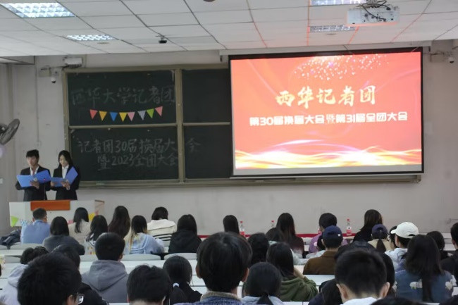 10月24日中午,西华大学记者团第30届换届大会暨2023全团大会在4A204举行。在场嘉宾有党委宣传部副部长翟元平、党委宣传部老师以及校史馆讲解团等兄弟社团代表和记者团全体成员。本次大会由王轩、徐怡瑶主持。