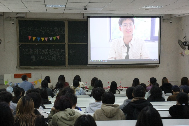 大会播放了记者团2023年招新视频,以幽默有趣的内容让大家全方位了解记者团,展现了记者团全体成员的拼搏精神和团内温暖和谐的氛围。