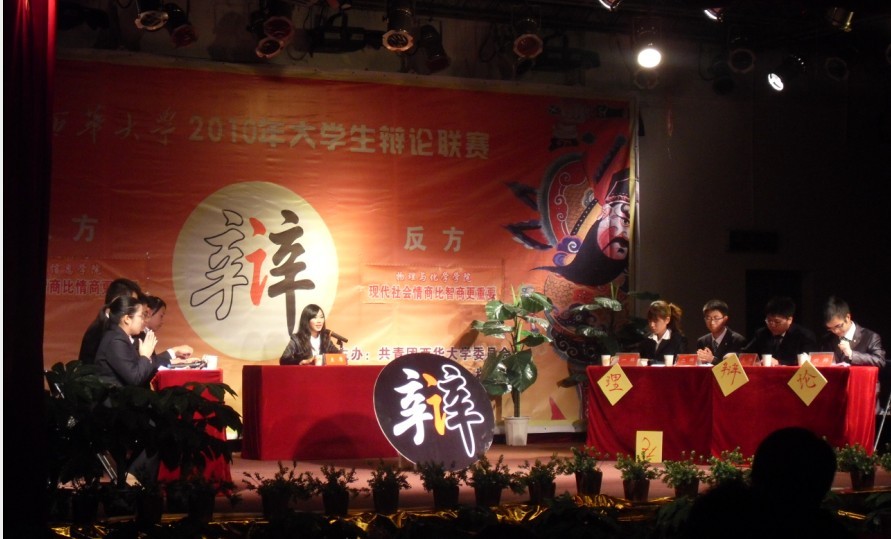10月26日,学生活动中心热闹非凡,由共青团西华大学委员会主办、校学生会承办的西华大学2010年大学生辩论联赛在此拉开帷幕。 首场比赛由电气信息学院对阵物理与化学学院。正方电气信息学院从现代社会智商比情商更重要为切入点,旁征博引。反方物理与化学学院也不甘示弱,以犀利的言辞和严谨的逻辑提出了现代社会情商比智商更重要的观点。比赛渐进高潮,双方唇枪舌战,步步紧逼,最终反方物理与化学学院取得了比赛的胜利,而正方王伟伟同学则荣获本场“最佳辩手”称号。 本次辩论赛旨在培养同学们的综合素养和思辨能力,营造良好的校园文化氛围,为广大同学提供展示自己的平台。从10月26日开始,每周星期二、星期四晚上7点,全校20支学院队伍将在学生活动中心展开激烈角逐,经过五轮的激烈比拼,层层淘汰,最终于11月末决出新一任辩论盟主。上届辩论联赛的前三强政治学院、人文学院、建筑与土木工程学院将直接进入第二轮比赛。