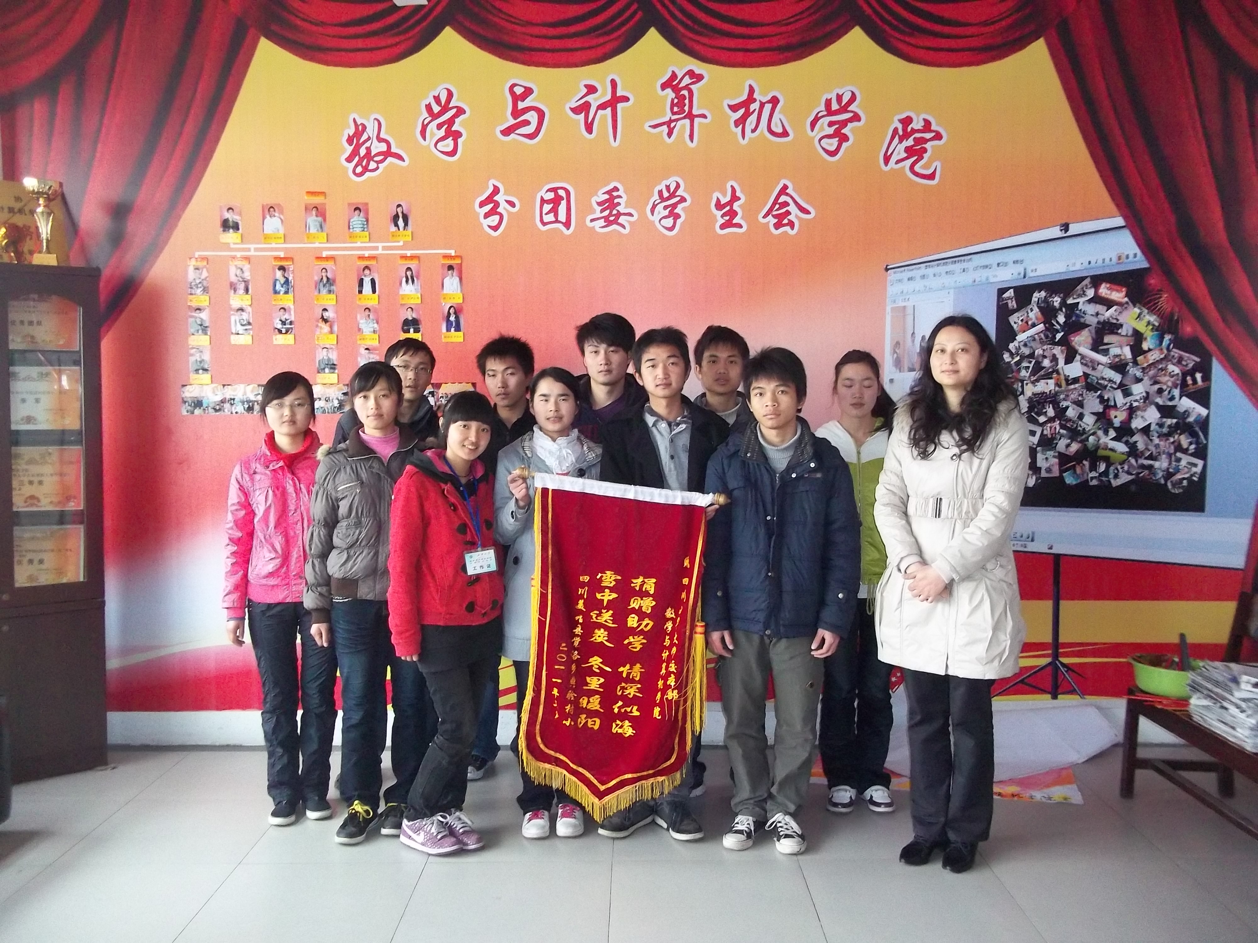 3月28日,一面绣有“雪中送炭、冬里暖阳,捐赠助学、情深似海”的锦旗和一封感谢信送到了数学与计算机学院办公室。锦旗和感谢信代表着大凉山美姑县的村民和孩子们浓浓的情意,感谢西华学子为他们送去了关怀,送去了祝福。 2010年11月,为了让凉山彝族自治州美姑县索玛花爱心学校的学生有度过一个温暖的冬天,数学与计算机学院的青年志愿者们开展了一个名为“向日葵”的志愿者活动,并通过宣传号召各界人士捐资捐物。在为期两周的时间内,为山区的孩子们筹集衣物55袋,义卖圣诞贺卡1800张,筹集资金4744元,受到了社会各界和媒体的广泛关注与赞扬。 伴着西华学子浓浓温情,大凉山美姑县的孩子们高高兴兴地度过了寒冷的冬天。冬去春来,孩子们送来了这份沉甸甸的感谢。希望孩子们能温暖的度过每一个冬天,西华学子的爱心行动也将继续开展下去。