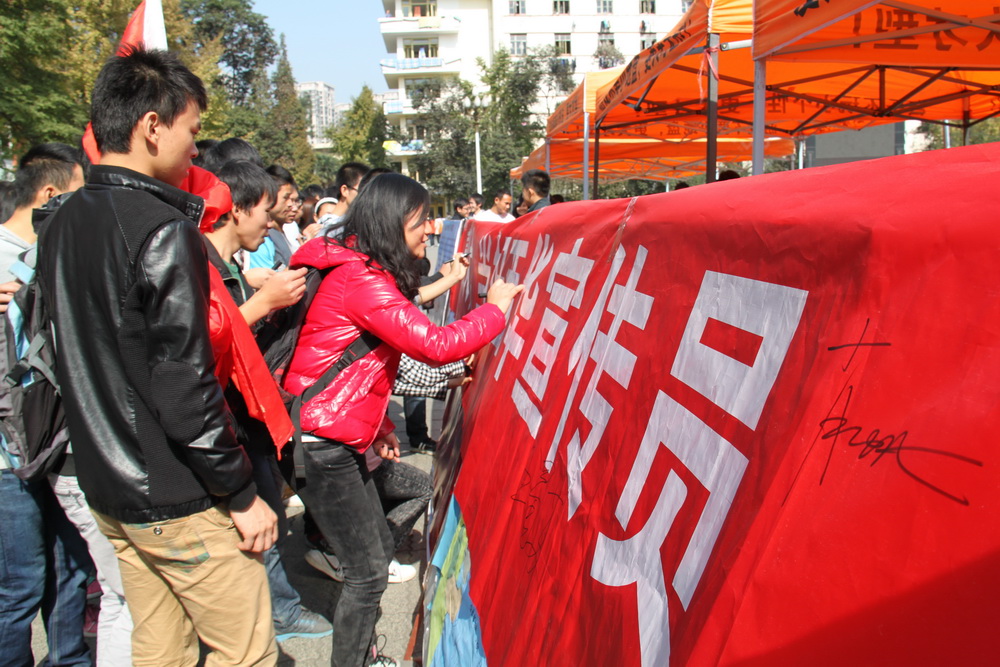 11月8日中午12点30分,西华大学第七届记者节在明德广场盛大开幕。党委宣传部副部长山述兰出席本次开幕式并致辞,党委宣传部的各位老师出席本次开幕式。本次记者节系列活动的主题为“聚焦西华传媒人,共话四海记者情”,活动由党委宣传部主办,党委宣传部下设的学生传媒中心西华社承办,西华教育电视台、西华广播台、西华大学主持人团、映像广角社、网络文化团协办。本次开幕式有近600余名学生传媒中心的同学参加,开幕式还吸引了许多热心校园传媒的同学。 中午12点10分左右,六大传媒社团的同学们分别在各食堂附近空地集合,进行“定格快拍”活动,以哨声为令在约定时间内进行30秒定格和快拍。随后六大社团在约定时间一起有序地手持社团锦旗,高呼记者节主题口号“聚焦西华传媒人,共话四海记者情 ”簇拥至明德广场主席台依序站队。随后开始仪式的启动,共同庆祝中国第十三个记者节的到来。 开幕式开始,首先由山述兰副部长致辞。她对学生传媒中心的同学们在学校新闻宣传工作中付出的努力,对同学们辛勤的工作表示赞扬。同时她也要求各位校园学生记者,一定要坚持“高举旗帜,围绕大局,服务师生,改革创新”的总要求,坚持解放思想,实事求是,最后,她还号召全体同学,共同祝愿党的十八大圆满成功! 随后,学生传媒中心轮值主席、西华社社长刘颖和来自西华社的新成员代表安琴先后发言。 随着西华大学第七届记者节系列活动正式启动,大家纷纷举起相机、摄像机、手机等留影记录下这个时刻。各位嘉宾及各社团的成员纷纷在印有“喜迎党的十八大•争做西华宣传员”的横幅上签名留念。 据悉,本次记者节的系列活动包括“学生记者体验活动”、“寻找身边传媒人活动”、“十佳新闻和十佳记者评选活动”、“新闻图文展”、“诗歌朗诵大赛”等多个活动,通过线上线下同步进行的模式,让每一个热心校园传媒的同学都能感受到记者节活动的精彩。 本次“记者节”活动可以塑造和传承“记者节”品牌活动和校园文化传统,鼓励校内宣传工作者孜孜不倦,为校园文化的繁荣做出贡献。