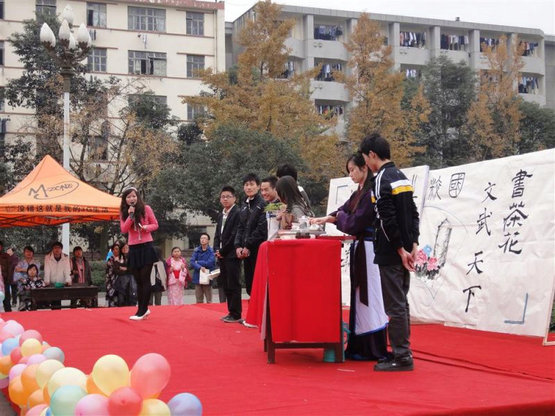 11月28日下午2:00,我校首届“国粹之英”国粹文艺展示活动在明德广场举行。本次活动由社管会主办,兰亭文学社、东方武术协会、日语协会、书画协会、茶文化协会共同承办。本次活动还邀请到电子科大、西南交大、银杏酒店管理学院、托普学院等高校嘉宾前来参加。 活动上,各个社团都将自己精心准备的节目呈现给现场观众。书画协会的现场书法绘画表演,东方武术协会的武术表演,茶文化协会的现场茶艺表演,日语协会的插花表演,兰亭文学社的话剧表演等精彩节目都赢得了全场观众的热烈掌声。活动还与现场观众积极互动,围绕我国的国粹文化向现场观众提问,激发了大家参与的兴趣。茶文化协会会长吴斌表示,希望通过这次‘国粹之英’活动告诉同学们,国粹其实离大家并不遥远。 本次国粹文化展示活动持续至下午5:00圆满结束。通过本次活动,让同学们近距离接触了我国优美的国粹文化,也让同学们对国粹文化有更深一层的理解,有利于国粹艺术在大学生中的推广。