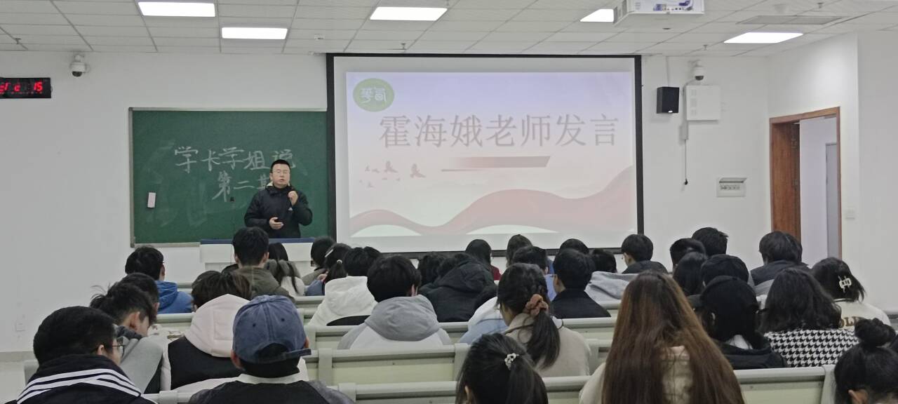首先,由郝利花老师发言对同学们良好的学习面貌作了表扬,对同学们提出殷切希望。而后,校友、四川新能源汽车创新中心有限公司(欧阳明高院士工作站)市场拓展经理杨华健,就大学的学习方法、学习目标进行了分享。提问环节中,杨华健学长耐心地回答同学们的问题,例如对专业的疑惑,以及如何提升个人能力、怎样做好个人的大学规划等。霍海娥老师对同学们积极提问提出表扬,勉励大家好好学习,做好职业生涯规划,祝愿大家学有所成。最后,张弛老师对大家做出激励。