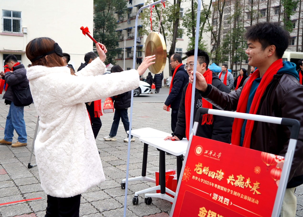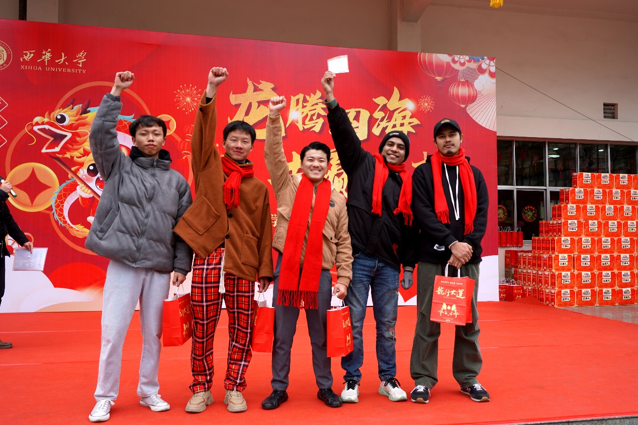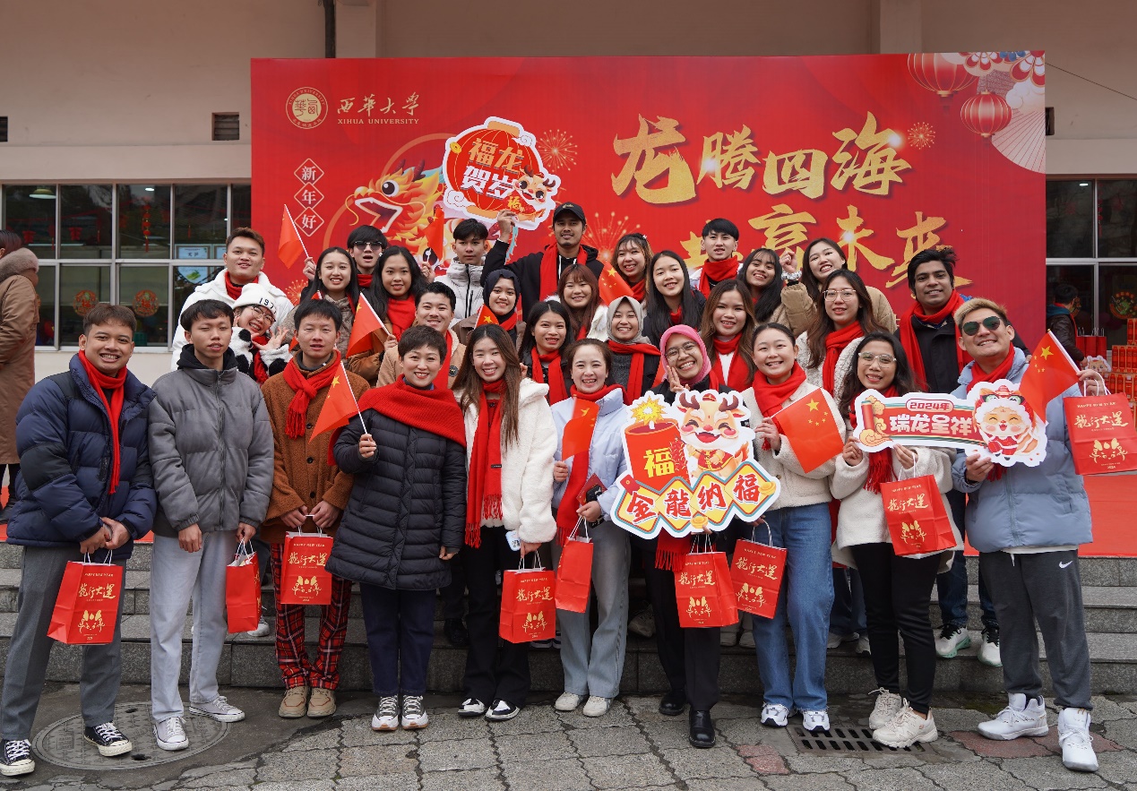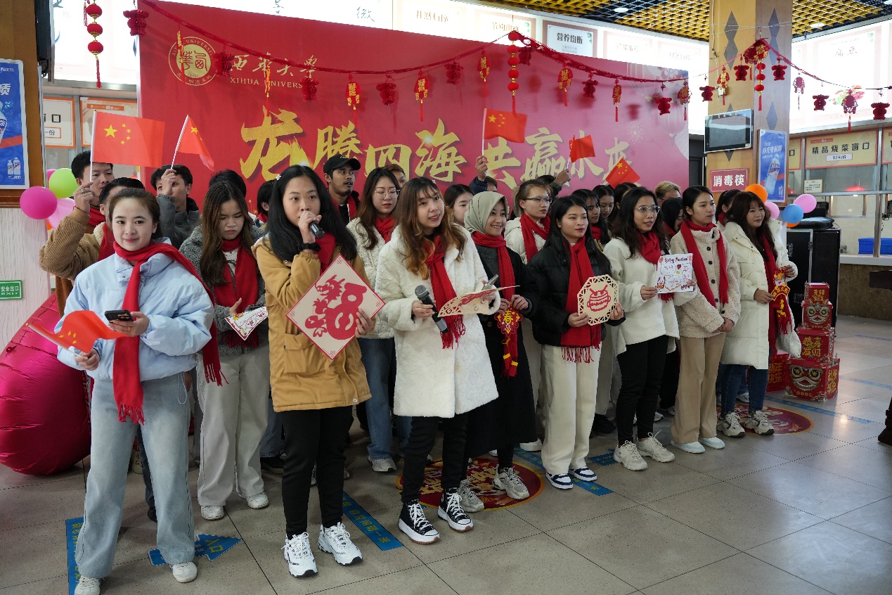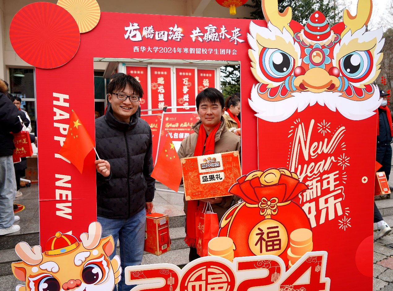 学校领导和关工委老同志为留校学生代表发放慰问大礼包,并送上了新春的问候与祝福。国际教育学院留学生合唱歌曲《成都》,用歌曲表达了在成都过新年的喜悦之情,营造了幸福和谐的节日氛围。