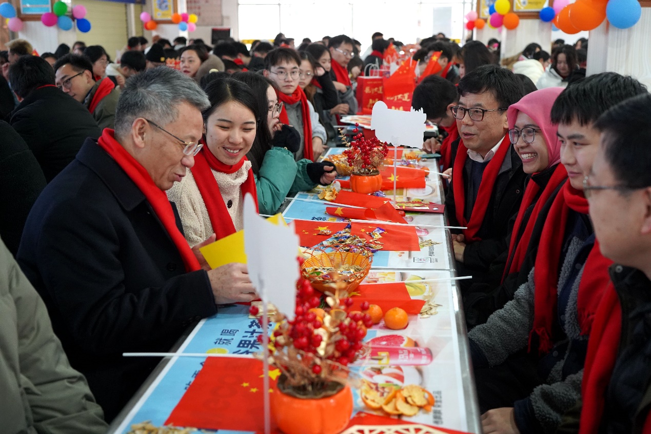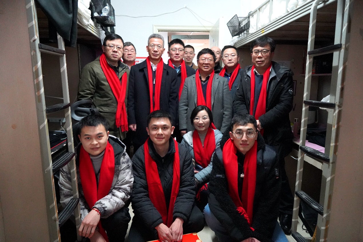 团拜会前,校领导带领相关职能部门负责人前往学生宿舍、实验室走访慰问了寒假留校学生,为同学们戴上喜庆的红围巾,送上新年礼物。每到一处,校领导都亲切询问留校学生留校原因,学习和生活有无困难,并叮嘱同学们要注意劳逸结合,不要违规使用电器,多与家人联系,祝愿同学们新年快乐。