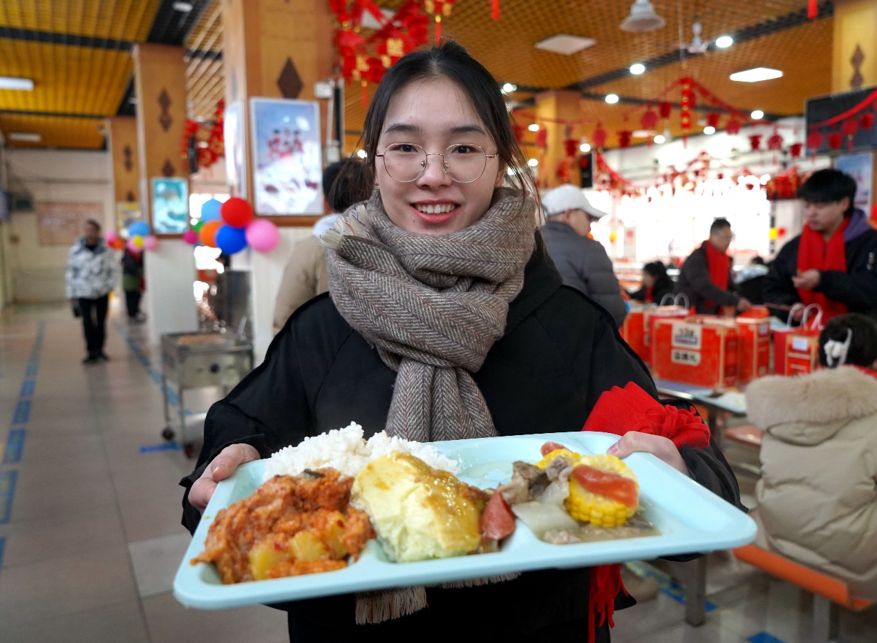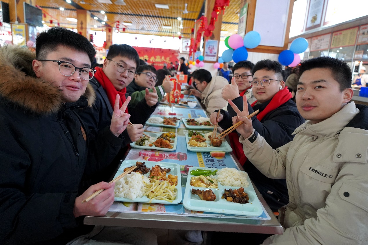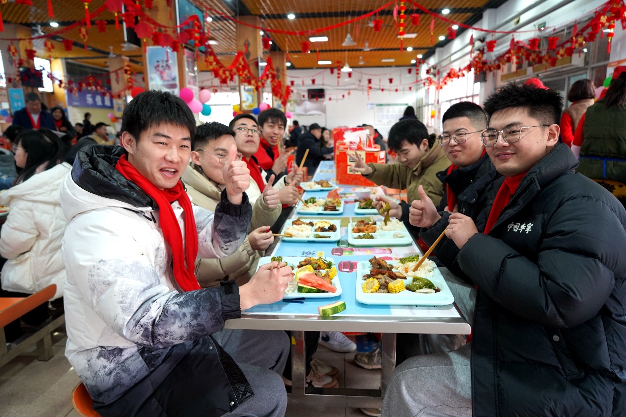 团拜会在全场师生齐唱《歌唱祖国》中圆满落幕,全体参会人员以满腔热忱携手,以嘹亮歌声启航,表达了西华人对祖国母亲的衷心祝愿和对美好未来的共同期待。团拜会结束后,校领导与留校学生一起吃团年饭,在场同学纷纷表示,团年饭菜品丰富,味道很棒。