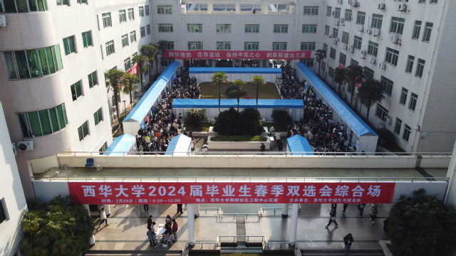 为深入学习贯彻习近平新时代中国特色社会主义思想和党的二十大精神,将习近平总书记来川视察重要指示精神践之于行,全面落实党中央、国务院对高校毕业生就业创业工作的决策部署,全力以赴促进毕业生高质量充分就业,2月29日,学校在三教中心花园组织“西华大学郫都校区2024届毕业生春季双选会(综合场)”。