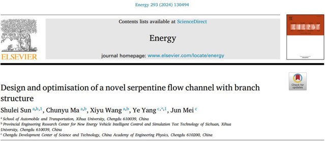 “Design and optimisation of a novel serpentine flow channel with branch structure”(Energy)论文第一作者为团队成员孙树磊教授,第二作者为2021级硕士研究生马春雨。该论文提出了一种新型的具有分支结构的蛇形流道,适用于锂电池高效热管理。