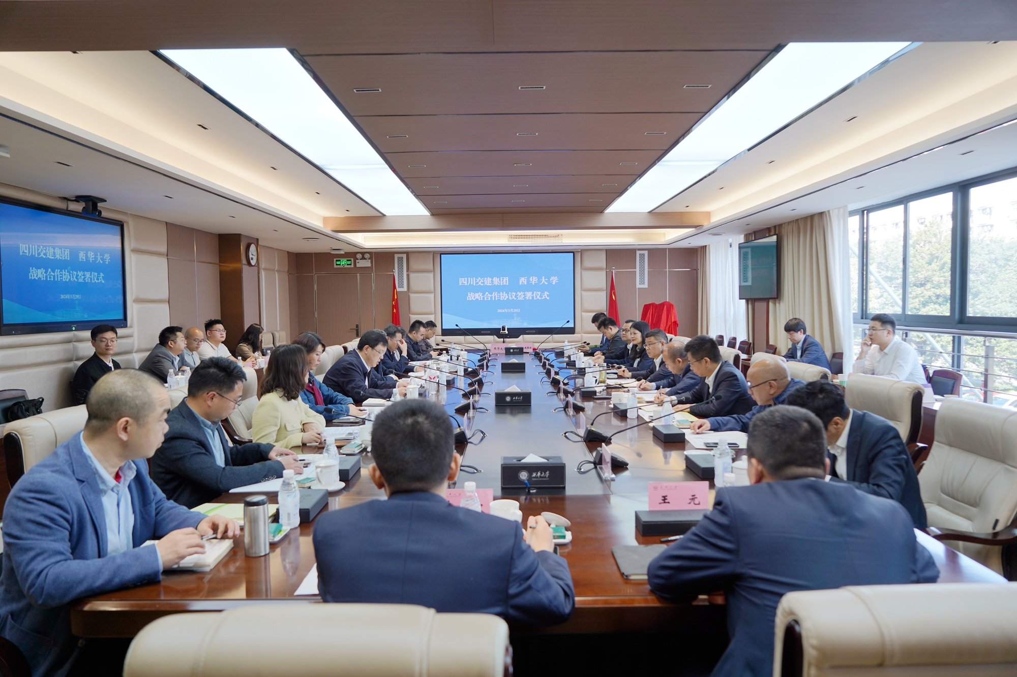 3月29日上午,四川交建集团与西华大学战略合作签约仪式在办公楼212会议室举行。四川交建集团党委书记、董事长章志高,党委副书记、总经理周永军,党委副书记向绪芳,总工程师于志兵,西华大学校长李秋实,副校长郎方年、邵永波出席签约仪式。签约仪式由郎方年主持。