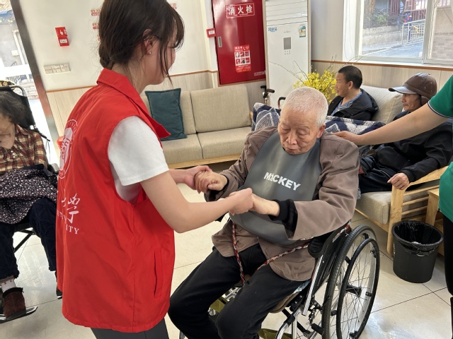 志愿者与老人互动