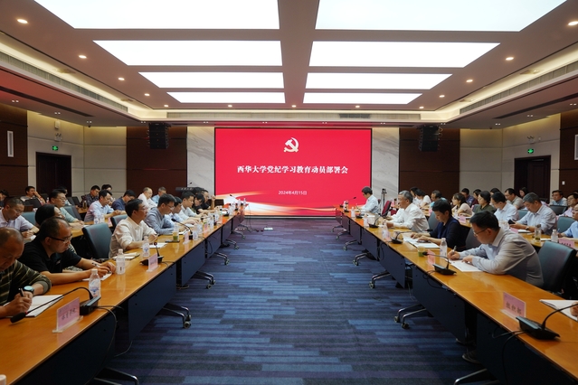 4月15日下午,学校在办公楼101会议室召开西华大学党纪学习教育动员部署会,学习贯彻习近平总书记关于党纪学习教育的重要讲话和重要指示精神,落实党中央和省委关于开展党纪学习教育的决策部署,启动学校党纪学习教育工作。全体校领导,各部门主要负责人,各学院书记、院长参会。校党委书记刘树根作动员部署讲话。校党委副书记、纪委书记朱燕萍主持会议。