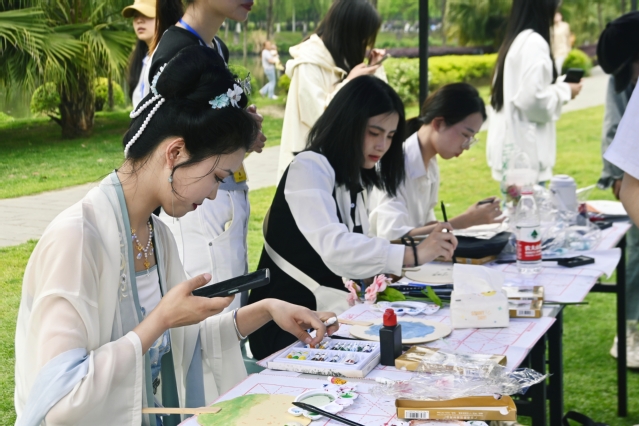 四月,是春天最美的诗篇,也是相逢的好时节。4月13日,西华大学第二届学生传统文化节活动在天籁湖畔拉开帷幕。本次活动以“弘扬传统文化,赓续中华文脉”为主题,通过绘风筝、画团扇、奏器乐、做手工、品茶味、书法体验等一系列精彩活动,吸引了众多西华学子参与。“此次活动内容形式丰富,参与感十足,不仅让大家有机会近距离领略中华优秀传统文化的独特魅力,更加深我们对中华传统文化的认同感、归属感。”现场一名同学讲道。