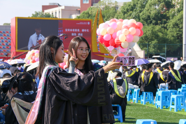 庄严而激昂的国歌声响起,2024届毕业生身着学位服,怀着对未来的憧憬与期待,共同迎来求学生涯中的难忘时刻。