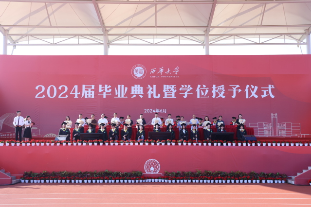 沱江河畔,观斗山旁;挺膺担当,奋楫笃行。6月25日上午,西华大学2024届学生毕业典礼暨学位授予仪式以线上线下相结合的方式,在郫都校区临江苑田径场、宜宾校区大会堂同步举行。