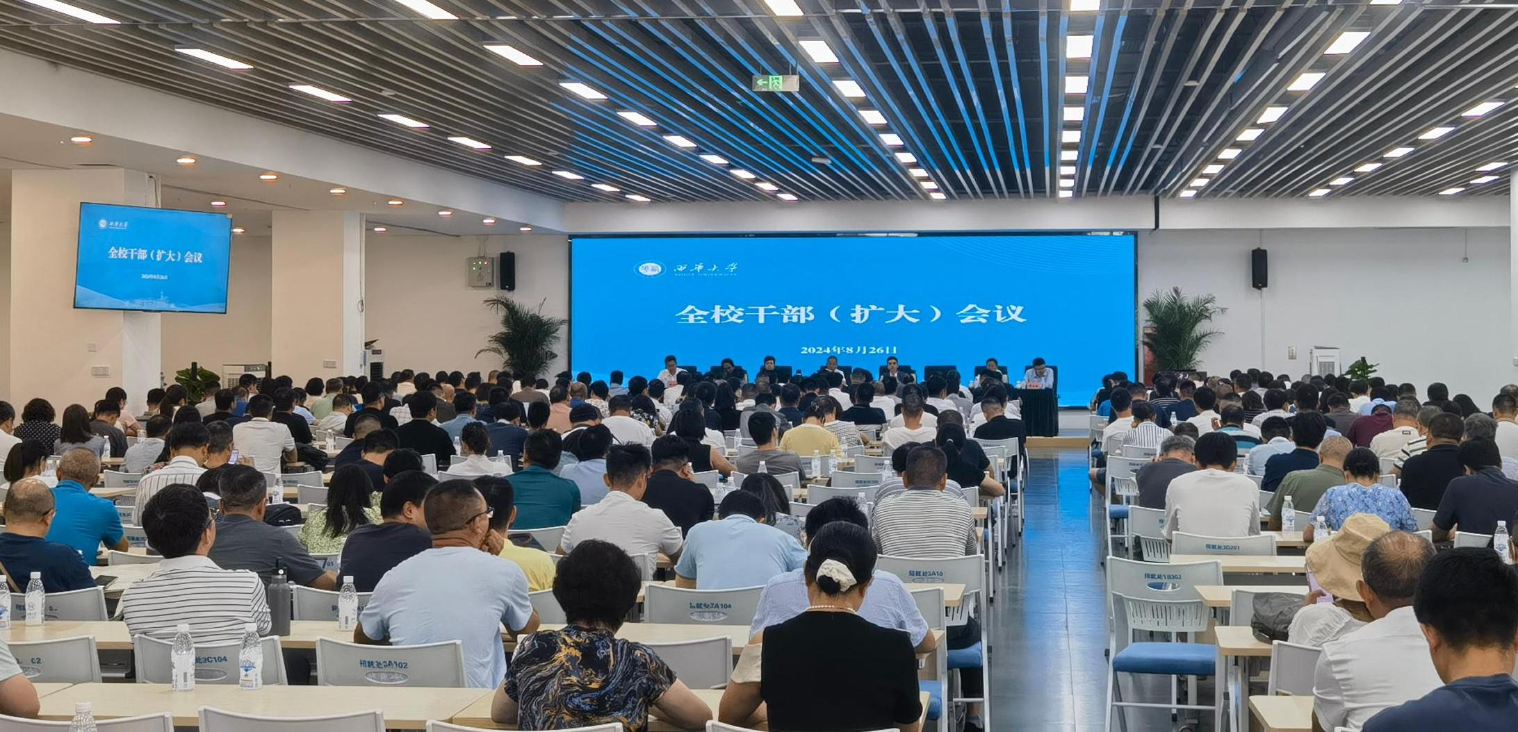 8月26日下午,学校在学生第五食堂多功能厅召开全校干部(扩大)会议,全面总结暑假相关工作,部署2024年教育教学审核评估工作及秋季学期工作。全体校领导,副处级以上中层干部,全体教授、各系主任、各专业负责人参加会议。校党委副书记、校长李秋实主持会议。