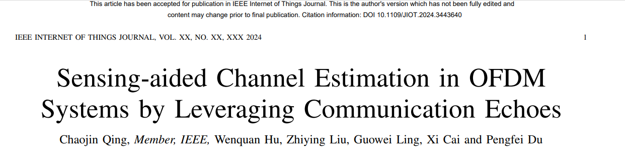 针对5G/6G促生的通感一体化和泛在智能关键技术,WNCG团队在无线通信物理层已潜心研究了7年,形成了系列的研究成果。近一年来,在中科院SCI一区《IEEE Internet of Things Journal》TOP期刊上发表题为“Sensing-aided Channel Estimation in OFDM Systems by Leveraging Communication Echoes”学术论文;在中科院SCI一区《Chinese Journal of Aeronautics》期刊上发表题为“LoS sensing-based superimposed CSI feedback for UAV-assisted mmWave systems”学术论文。在中科院SCI二区《IEEE Transactions on Vehicular Technology》TOP期刊上发表题为“Compressed ELM-based Frame Synchronization”的学术论文和《IEEE Transactions on Green Communications and Networking》期刊上发表题为“GatS-Net: GAT-based Superimposed CSI Feedback”的研究性论文。