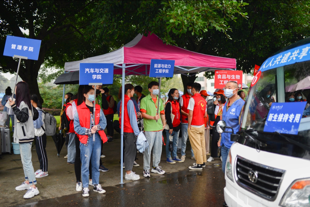 新生报到期间,校园小白龙免费接送,学校还设立了休息区、饮水点、医疗点等服务点,学校食堂还在迎新点附近为同学们准备了可口的饭菜,为新生提供全方位的服务。