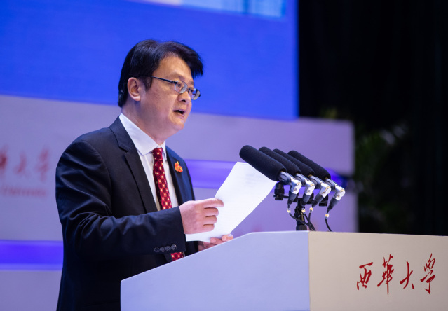 李言荣院士作为兄弟院校代表,向西华大学全体师生员工和广大海内外校友表示祝贺。他表示两校之间建立了守望相助的深情厚谊,这种友谊不仅体现在共同为国家、为民族培养栋梁人才上,更体现在两校之间密切的师生交流和互动往来上,四川大学愿意与西华一道,厚植家国情怀,坚守初心使命,共同为推动国家和四川经济社会发展作出更大的贡献。