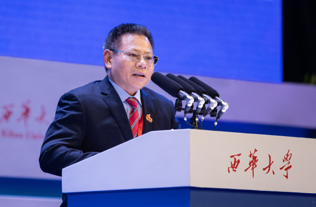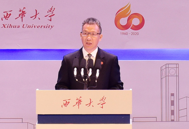 尹力向全校师生员工和广大校友表示热烈祝贺和美好祝愿。他说,西华大学发展历程映照出60多年四川经济社会发展的巨大变迁,由农业发展机械化,到推进工业化进程,进而加强全社会经济管理,促进经济社会可持续健康发展。经过一代又一代师生员工的接续奋斗,西华大学已初步建成学科门类齐全、多学科协调发展的省属综合性大学,为四川和全国累计输送了27万多名各类人才,为国家现代化建设作出了积极贡献,已成为服务地方经济社会发展的一支重要力量。
