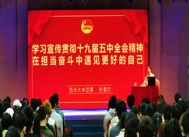 为深入贯彻学习第十九届五中全会精神,明确团委学生工作者的奋斗目标和责任,培养学生团学干部积极意识,11月7日,西华大学团委在学生活动中心三楼举办“做新时代主动担当作为的奋斗者”专题培训班。本次培训班邀请到西南交通大学力学与工程学院党委副书记孔祥彬老师、我校团委副书记张雯欣老师、经济学院党委副书记易宇峰老师和团委陈锦老师担任主讲人。