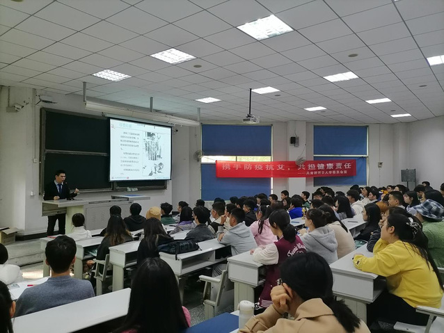 在第33个“世界艾滋病日”来临之际,为了普及校园艾滋病防治知识,增强大学生防控艾滋病意识,11月17日下午2:30,以“携手防疫抗艾,共担健康责任”为主题的大学生艾滋病防治知识讲座在4A202顺利举行,本次讲座邀请到成都肛肠专科医院副主任医师卿勇医生为大家开讲,来自全校200余名同学参与了此次讲座。
