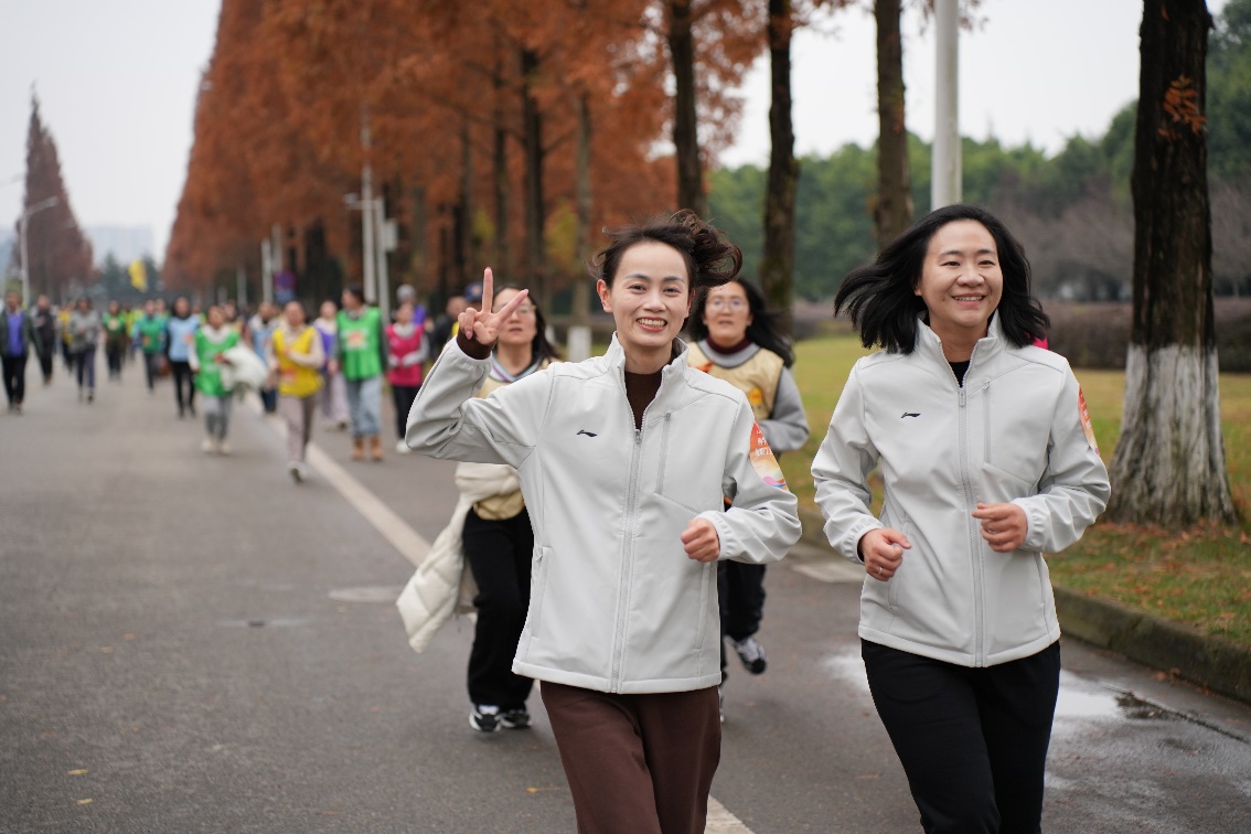 校党委书记靳敏,党委常委、副校长费凌,党委常委、副校长郎方年参加了此次健康跑活动,校党委副书记、工会主席朱兴华为活动发令。“5、4、3、2、1!”全场共同倒计时5下后,伴随着清脆的枪声,老师们纷纷冲出起跑线,用奔跑和速度展示着活力与激情。