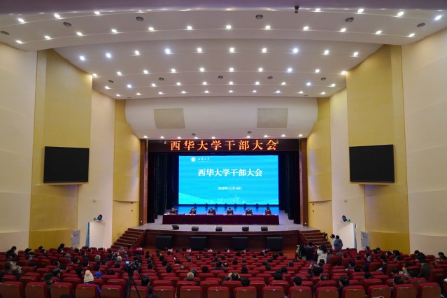12月18日下午,学校在艺术大楼大剧场召开全校干部大会。省委组织部来校宣布省委省政府关于调整学校主要领导干部的决定,余孝其同志任西华大学党委书记;因任职年龄原因,边慧敏同志不再担任西华大学党委书记、常委职务;李秋实同志任西华大学党委常委、副校长。