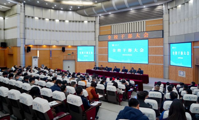 2月25日下午,学校在四教报告厅召开2021年新学期干部大会,传达省委农村工作会议和省级领导干部和市厅级主要负责同志读书班主要精神,通报寒假工作情况,部署学校今年主要工作。全体在校校领导,副处及以上中层领导干部参加会议。