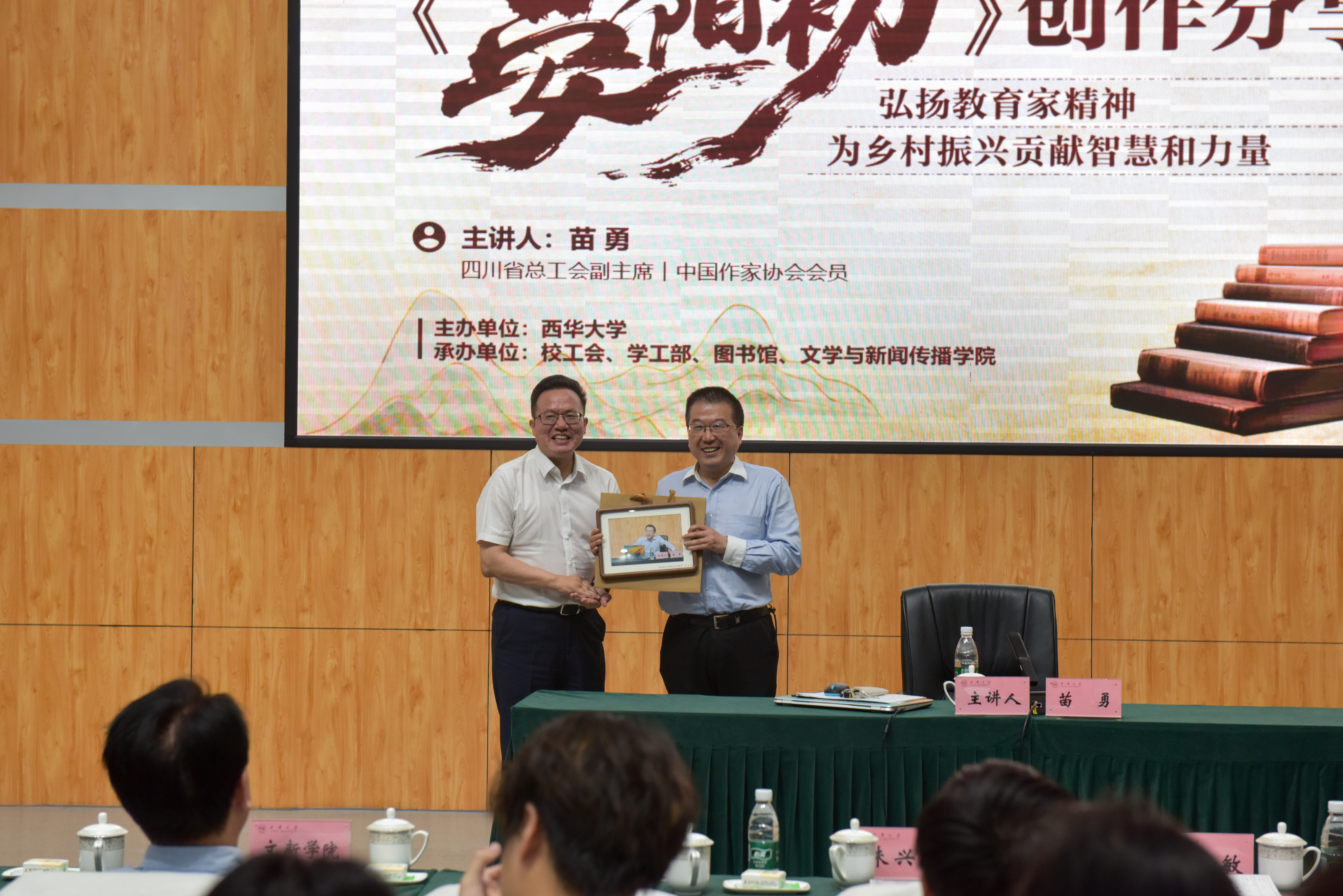为迎接第30个世界读书日,4月22日,西华大学第十六届“书香西华”阅读文化节之“作家进校园”首场讲座在四教报告厅成功举办。四川省总工会副主席、中国作家协会会员苗勇受邀到校分享作品《晏阳初》的精彩创作历程。党委书记靳敏主持讲座,党委副书记朱兴华出席活动。