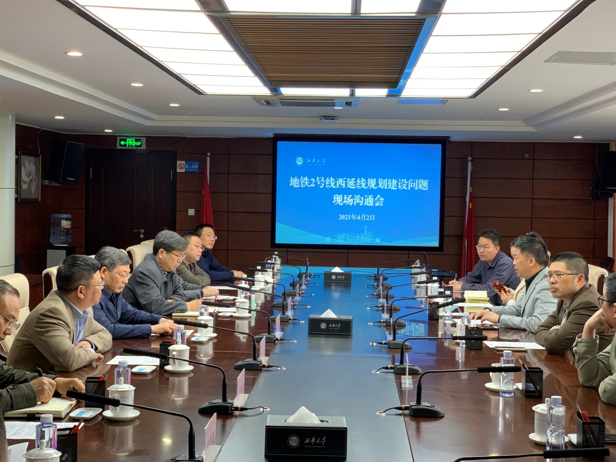 1.4月2日,成都市住建局、市发改委、市规划和自然资源局、市轨道交通集团及中铁二院的领导和专家一行来校召开现场沟通会,就地铁2号线西延线规划建设问题与我校省(市)人大代表、政协委员等进行沟通。校党委书记余孝其、党委副书记王政书、副校长刘小兵及相关职能部门负责人参加会议。