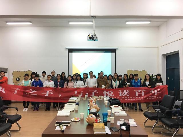 最后,郑老师与同学们合影留恋,此次“悦读者·易起读书”活动取得了良好的效果,不仅加深了同学们对《百年不孤》一书的理解、使同学们增长了关于阅读方面的知识,也开阔了大家的视野,成为同学们交流思想的良好平台。