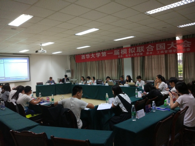5月20日上午九点,西华大学第一届模拟联合国大会在体育馆北会议室拉开帷幕。本次活动由校团委主办,工商管理学院团委承办,西华大学模拟联合国协会协办。大会负责人以及“各国代表”参会。