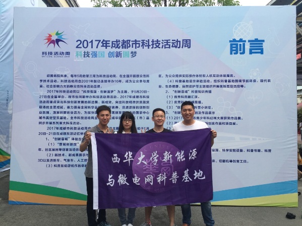 由科技部、中央宣传部、中国科协共同主办的“科技强国·创新圆梦”全国科技活动周于5月20—27日在全国各地隆重举行, 成都市于5月20日—21日在东郊记忆同期举办“2017年成都市科技活动周主题展示体验活动”。作为目前我校唯一的科普教育基地,西华大学新能源与微电网科普基地受邀参与了本次科普活动。
