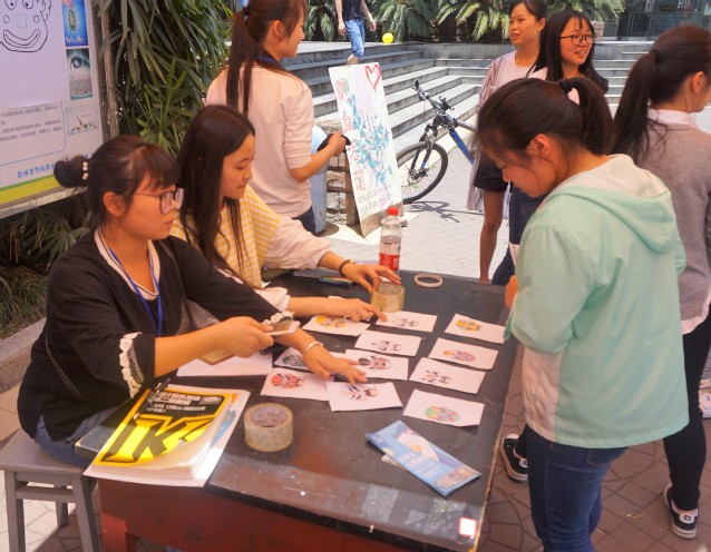 为了宣传日活动的顺利开展,心理学部的同学们制作了心理健康活动宣传海报,并安排干事到班宣传以达到宣传效果。活动当天,为吸引同学们的注意,心理学部还特地派出干事发放心理宣传小册子,调动同学们参与的积极性。活动围绕大学生在成长过程中普遍存在的心理问题,开展了形式多样的心理健康活动,积极营造有利于大学生身心健康和谐发展的校园氛围,引导学生正确面对各种困惑,并主动探求解决途径,健康成长。活动结合“蒙眼作画”、“京剧脸谱排序”、“DIY彩色陀螺”等游戏使同学们更直观的认识心理指导,重视自身心理健康。