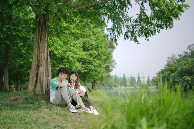 虽然同为一个班的同学,但直到大一第一学期结束,李进和汤成兰都对对方接触不多。故事开始在大一下期,李进像往常一样在操场夜跑,遇见了同在操场和室友散步的汤成兰,想着是一个班的同学,他就主动上前与她聊了几句天,互相加了微信。很快,两人就发现了彼此的共同爱好——运动,在这之后的日子,他们成为“球友”,常常相约一起打羽毛球、跑步。在一次次的相处之中,情愫渐萌,情谊渐浓。“既像知心好友,又像恋人。”汤成兰这样形容他们的爱情。“不是像,是就是。”李进笑着说道。