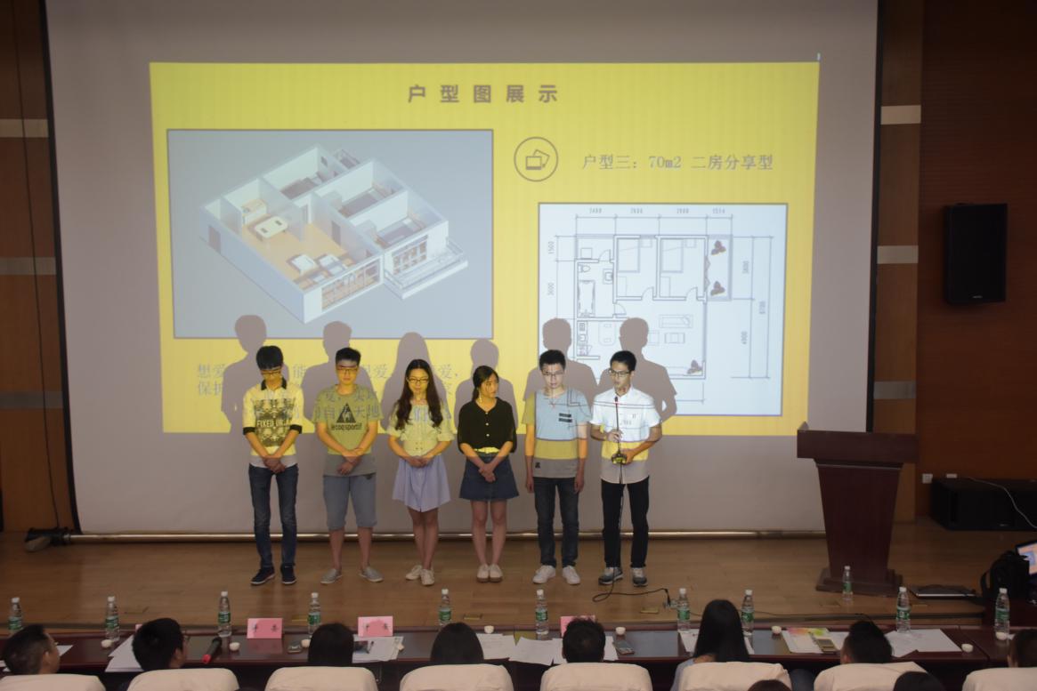 本次大赛共有7支队伍进入决赛。比赛伊始,学院党委书记龙雅芳代表学院致辞,首先她对人围的队伍表示热烈的祝贺。其次,她希望参赛同学能展示才华,成为学院的骄傲,西华的骄傲。随后,主持人介绍了比赛规则,比赛分为PPT展示、评委提问、拉票三个环节。紧接着,参赛队伍依次展示他们的设计户型,阐明设计理念。其中,“峰行驼铃队”设计的作品“东邨大院”整个小区集运动时尚为一体,采取销售、租赁相结合得销售方式,得到了评委们的一致好评;“圈圈点点队”展示的小区设计主打宜居特色,交通便捷;“启明星房产队”向大家展示了他们的作品“绿云杨柳”,该小区采用墙体绿化设计,节能环保,并带有空中花园;“房之栋梁队”的“莱茵湾”项目旨在打造高端改善型花园洋房,为住户提供高品质生活;“包工头队”的“山街”利用了重庆独特的地理位置,采用旧房改造,降低了开发商成本,户型光照充足;“土筑造房队”向我们展示了他们户型多样的小区设计,全力打造中高端品质的现代简约风格宅区。“速度与激情9队”的作品“锦时广场”选址西华大学西大门,建筑主体采用钢结构,专为大学生打造,丰富师生生活,宣扬学校文化,得到了评委们极高的赞赏。