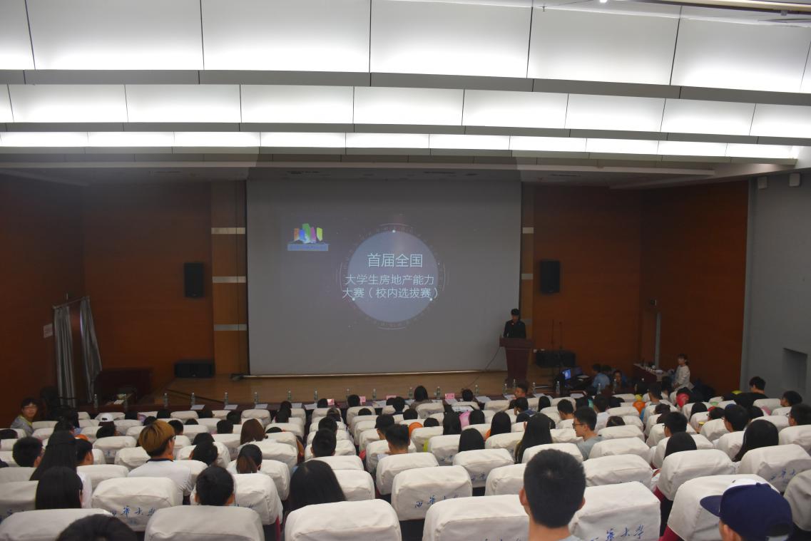 6月14日晚19:00,首届全国大学生房地产能力大赛西华大学校内选拔赛决赛在图书馆报告厅举行。本次总决赛由建设与管理工程学院陈小勇、项勇、卢立宇三位老师担任评委,成都正合地产顾问有限公司策划总监文军作为特邀嘉宾出席了本次决赛。学院党委书记龙雅芳,团委书记何汇川,部分辅导员老师以及来自全校相关专业的学生代表参加了本次比赛。